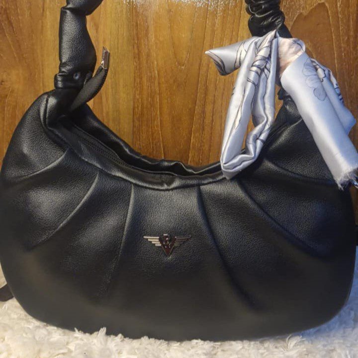 এলিগ্যান্ট রুচড হ্যান্ডেল লেডিস শোল্ডার ব্যাগ স্কার্ফ সহ